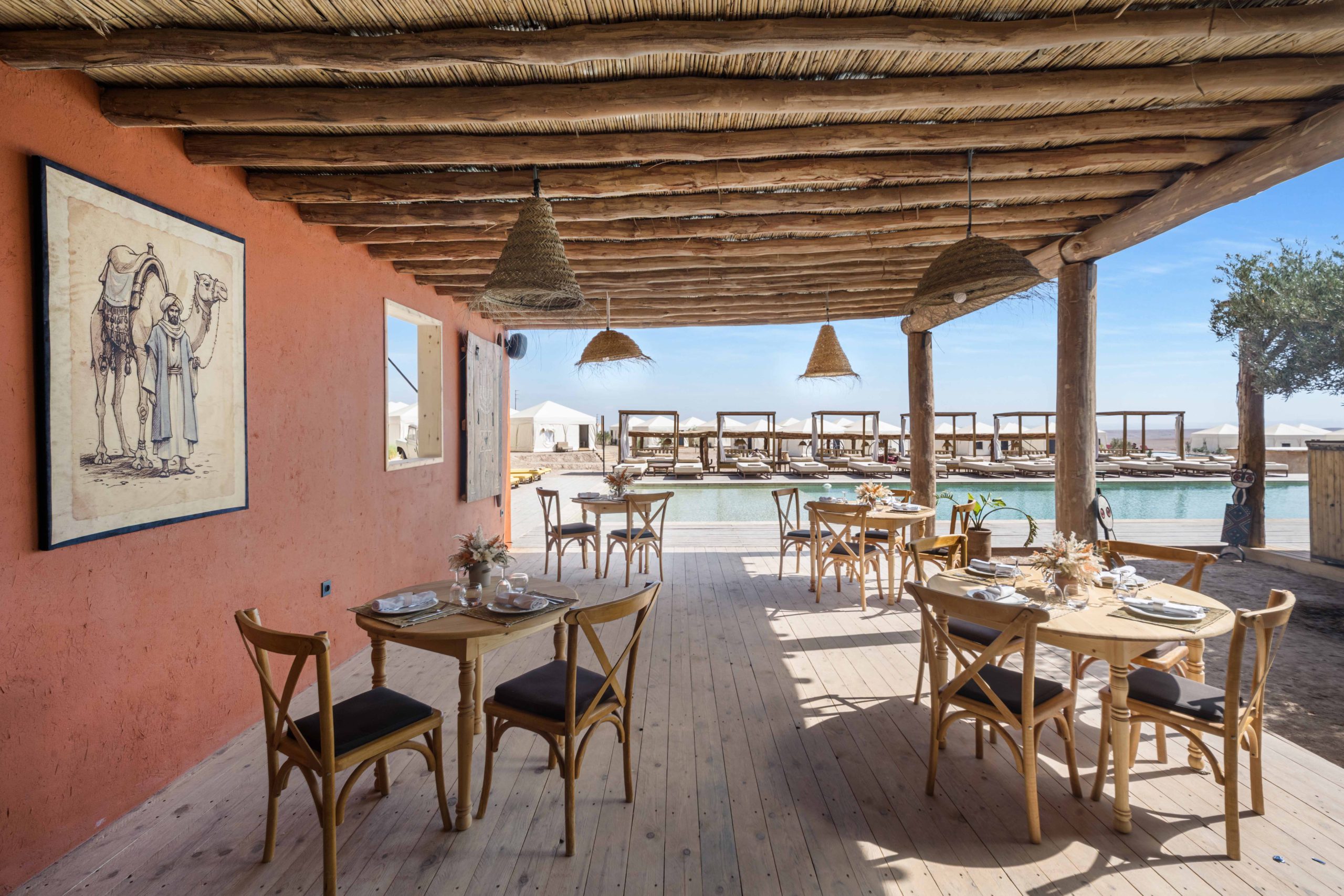 Les clients peuvent accéder à la piscine pour la journée et profiter du restaurant où notre chef marocain prépare une gamme de délicieux repas à base d’ingrédients locaux frais. sélection de salades fines marocaines, briouates, tanjia marrakchia de bœuf, couscous végétarien mais aussi pastilla au lait à la fleur d’oranger et amandes concassées